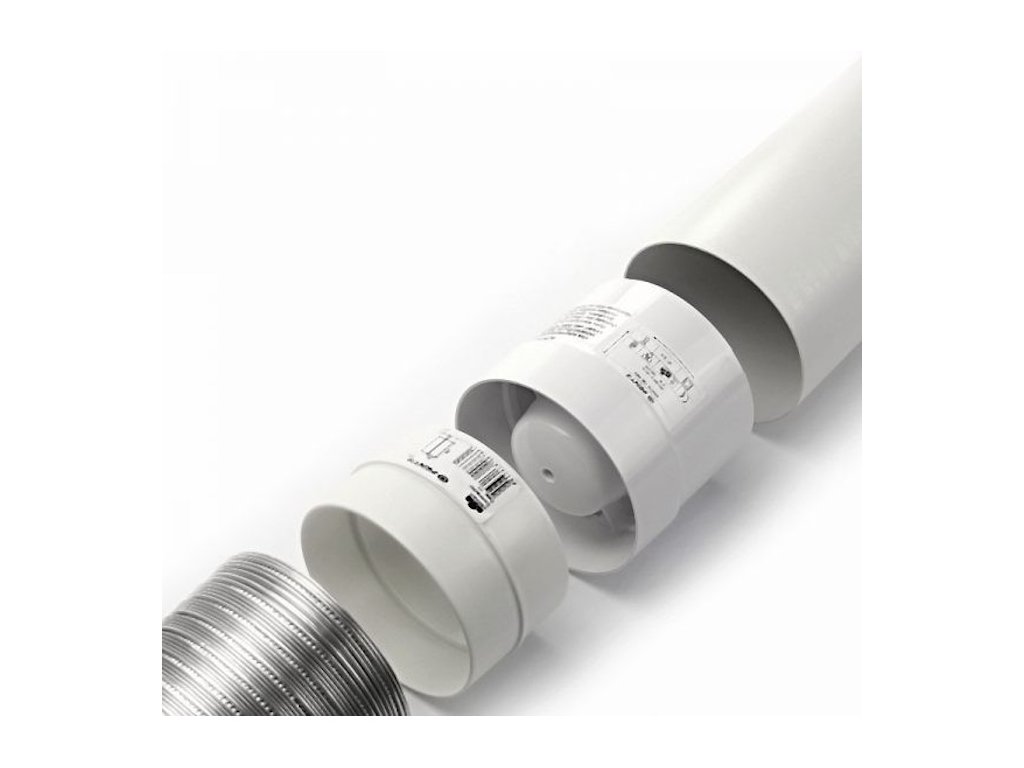 Jednorychlostní inline větrák do flexibilních potrubí Vents VKO 150 je vhodný pro méně náročné ventilační systémy v koupelnách, toaletách, kuchyních, kancelářích nebo malých pěstírnách bylinek. Jasnou předností je nízká hmotnost, tělo z odolného ABS plastu a tichý provoz. Konstrukce oběhového kola garantuje vysokou účinnost i dlouhou životnost.