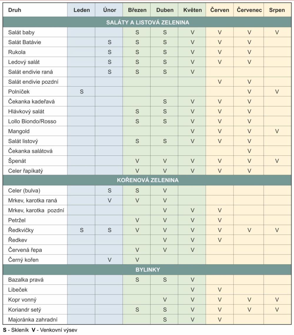 V galerii si můžete prohlédnout seznam plodin a doporučené měsíce jejich vysetí a výsadby.