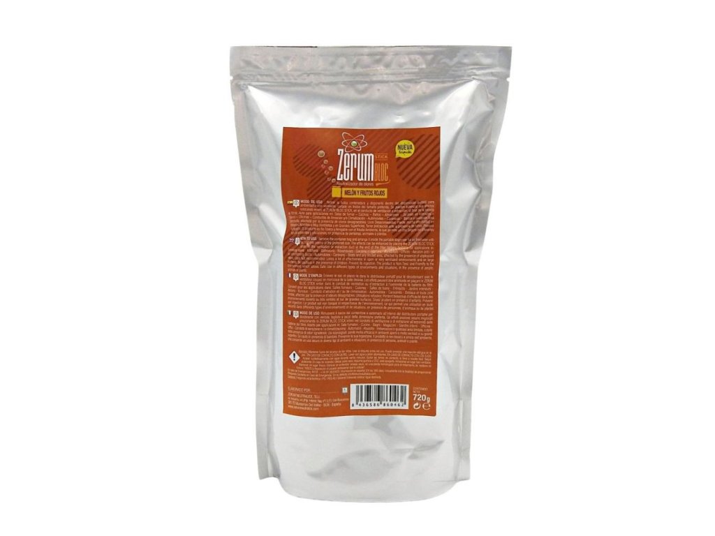 Netoxický profesionální neutralizátor zápachu Zerum Bloc Stick se velmi snadno používá. Obsahuje silnou látku pohlcující zápach. K dostání v balení po 170 a 720 g a v 4 vůních: lesní jahoda (Fresa silvestre), meloun a červené ovoce (Melón y frutos rojos), máta (Mentolado), neutrální (Neutro). Obecně slouží k neutralizaci pachů v jakémkoli prostoru. Eliminuje zápach z vlhkosti, kouření, auta, koupelny, tabáku, domácích zvířat, koček a psů atd. Zerum Bloc Stick je ideální pro neutralizaci a osvěžení pachů z osobních automobilů, karavanů, nákladních automobilů, dodávek a dalších. Odstraňuje tak veškeré stopy nepříjemného zápachu. V otevřeném prostředí, na velkých plochách a/nebo v silně větraných prostorách může dojít ke ztrátě účinnosti. Rovněž je třeba dbát zvýšené opatrnosti v přítomnosti dětí, protože není vhodný k požití. Zerum Bloc Stick neutralizátor zápachu je netoxický a šetrný k životnímu prostředí. Uchovávejte mimo dosah dětí a domácích zvířat.