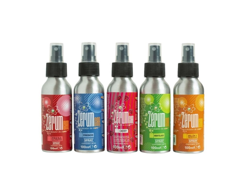 Netoxický profesionální neutralizátor zápachu ve formě malého spreje, Zerum CAR, se velmi snadno používá. Obsahuje silnou látku pohlcující zápach. K dostání v 12ml a 100ml balení a v 5 vůních: lesní jahoda (Fresa silvestre), meloun a červené ovoce (Melón y frutos rojos), máta (Mentolado), neutrální (Neutro), třešeň (Cherry). Obecně slouží k neutralizaci pachů v jakémkoli prostoru. Eliminuje zápach z vlhkosti, kouření, auta, koupelny, tabáku, domácích zvířat, koček a psů atd. Zerum CAR Spray je ideální pro neutralizaci a osvěžení pachů z osobních automobilů, karavanů, nákladních automobilů, dodávek a dalších. Odstraňuje tak veškeré stopy nepříjemného zápachu. V otevřeném prostředí, na velkých plochách a/nebo v silně větraných prostorách může dojít ke ztrátě účinnosti. Rovněž je třeba dbát zvýšené opatrnosti v přítomnosti dětí, protože není vhodný k požití. Zerum neutralizátor zápachu je netoxický a šetrný k životnímu prostředí. Uchovávejte mimo dosah dětí a domácích zvířat.