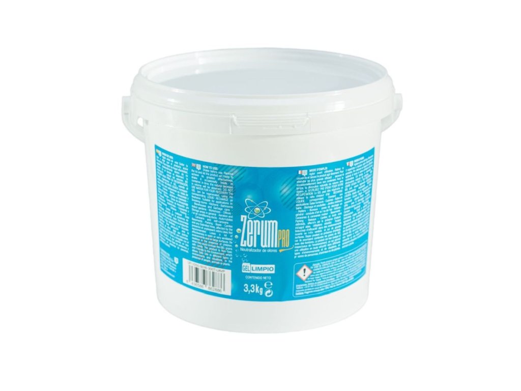 Univerzální, netoxický a účinný neutralizér zápachu Zerum PRO Gel Limpio, 3.3 kg se postará o důkladnou eliminaci nežádoucích pachů v uzavřených místnostech. K dostání v balení 400 g, 900 g, 3,3 kg, 5 kg, 12,5 kg a v 5 vůních: lesní jahoda (Fresa silvestre), meloun a červené ovoce (Melón y frutos rojos), máta (Mentolado), neutrální (Neutro), čistá (Limpio).
