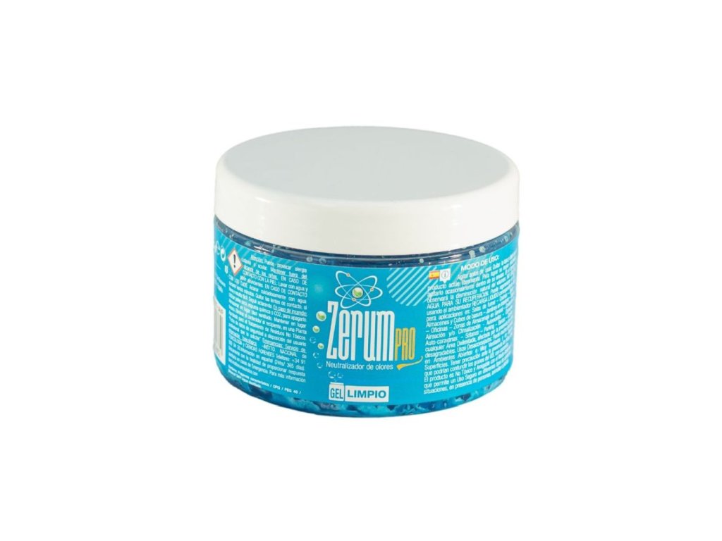 Netoxický profesionální neutralizátor zápachu Zerum PRO Gel se velmi snadno používá. Obsahuje silnou látku pohlcující zápach. K dostání v balení po 400 g, 900 g, 3,3 kg, 5 kg, 12,5 kg a v 5 vůních: lesní jahoda (Fresa silvestre), meloun a červené ovoce (Melón y frutos rojos), máta (Mentolado), neutrální (Neutro), čistá (Limpio). Obecně slouží k neutralizaci pachů v jakémkoli prostoru. Eliminuje zápach z vlhkosti, kouření, auta, koupelny, tabáku, domácích zvířat, koček a psů atd. Zerum PRO Gel je ideální pro neutralizaci a osvěžení pachů z osobních automobilů, karavanů, nákladních automobilů, dodávek a dalších. Odstraňuje tak veškeré stopy nepříjemného zápachu. Použití můžete prodloužit použitím Zerum Pro Neutralizer Recarga, protože se jedná o aktivační kapalinu prostředku Zerum PRO Gel. K jeho obnově NEPOUŽÍVEJTE vodu, tím byste pouze obnovili jeho objem, ale nikoliv přítomnost neutralizačního prostředku a jeho účinnost by byla narušena. V otevřeném prostředí, na velkých plochách a/nebo v silně větraných prostorách může dojít ke ztrátě účinnosti. Rovněž je třeba dbát zvýšené opatrnosti v přítomnosti dětí, protože není vhodný k požití. Zerum Gel neutralizátor zápachu je netoxický a šetrný k životnímu prostředí. Uchovávejte mimo dosah dětí a domácích zvířat.