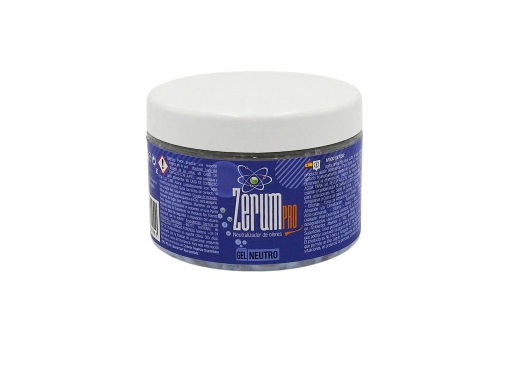 Netoxický profesionální neutralizátor zápachu Zerum PRO Gel se velmi snadno používá. Obsahuje silnou látku pohlcující zápach. K dostání v balení po 400 g, 900 g, 3,3 kg, 5 kg, 12,5 kg a v 5 vůních: lesní jahoda (Fresa silvestre), meloun a červené ovoce (Melón y frutos rojos), máta (Mentolado), neutrální (Neutro), čistá (Limpio). Obecně slouží k neutralizaci pachů v jakémkoli prostoru. Eliminuje zápach z vlhkosti, kouření, auta, koupelny, tabáku, domácích zvířat, koček a psů atd. Zerum PRO Gel je ideální pro neutralizaci a osvěžení pachů z osobních automobilů, karavanů, nákladních automobilů, dodávek a dalších. Odstraňuje tak veškeré stopy nepříjemného zápachu. Použití můžete prodloužit použitím Zerum Pro Neutralizer Recarga, protože se jedná o aktivační kapalinu prostředku Zerum PRO Gel. K jeho obnově NEPOUŽÍVEJTE vodu, tím byste pouze obnovili jeho objem, ale nikoliv přítomnost neutralizačního prostředku a jeho účinnost by byla narušena. V otevřeném prostředí, na velkých plochách a/nebo v silně větraných prostorách může dojít ke ztrátě účinnosti. Rovněž je třeba dbát zvýšené opatrnosti v přítomnosti dětí, protože není vhodný k požití. Zerum Gel neutralizátor zápachu je netoxický a šetrný k životnímu prostředí. Uchovávejte mimo dosah dětí a domácích zvířat.