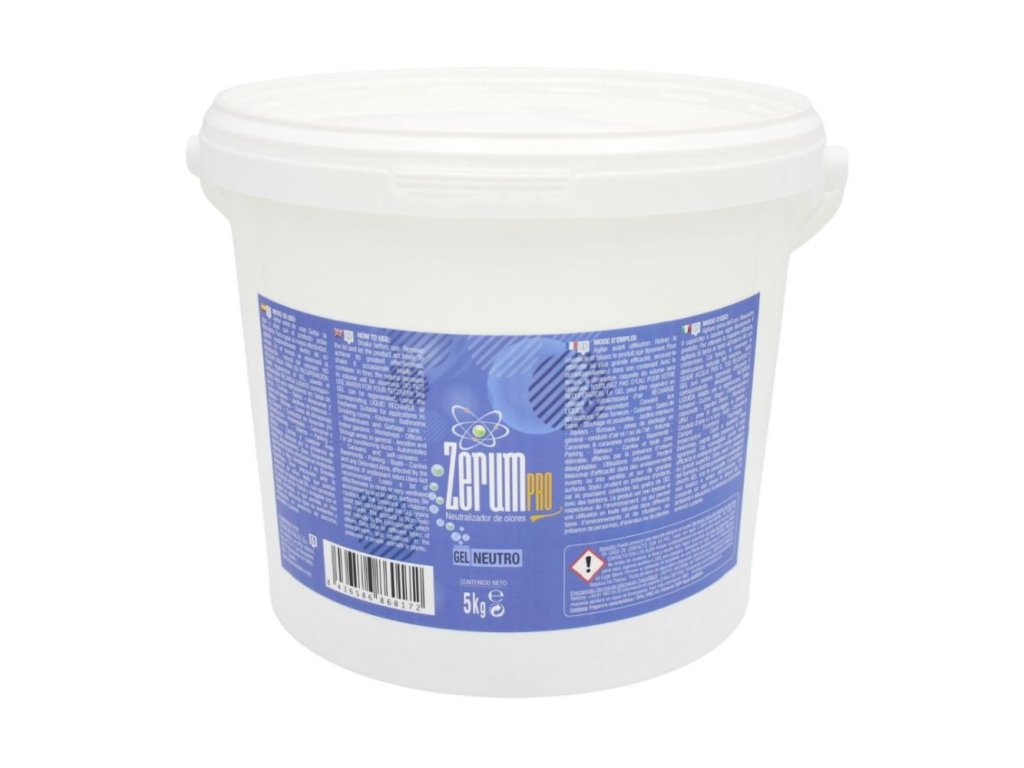 Netoxický profesionální neutralizátor zápachu Zerum PRO Gel se velmi snadno používá. Obsahuje silnou látku pohlcující zápach. K dostání v balení po 400 g, 900 g, 3,3 kg, 5 kg, 12,5 kg a v 5 vůních: lesní jahoda (Fresa silvestre), meloun a červené ovoce (Melón y frutos rojos), máta (Mentolado), neutrální (Neutro), čistá (Limpio). Obecně slouží k neutralizaci pachů v jakémkoli prostoru. Eliminuje zápach z vlhkosti, kouření, auta, koupelny, tabáku, domácích zvířat, koček a psů atd. Zerum PRO Gel je ideální pro neutralizaci a osvěžení pachů z osobních automobilů, karavanů, nákladních automobilů, dodávek a dalších. Odstraňuje tak veškeré stopy nepříjemného zápachu. Použití můžete prodloužit použitím Zerum Pro Neutralizer Recarga, protože se jedná o aktivační kapalinu prostředku Zerum PRO Gel. K jeho obnově NEPOUŽÍVEJTE vodu, tím byste pouze obnovili jeho objem, ale nikoliv přítomnost neutralizačního prostředku a jeho účinnost by byla narušena. V otevřeném prostředí, na velkých plochách a/nebo v silně větraných prostorách může dojít ke ztrátě účinnosti. Rovněž je třeba dbát zvýšené opatrnosti v přítomnosti dětí, protože není vhodný k požití. Zerum Gel neutralizátor zápachu je netoxický a šetrný k životnímu prostředí. Uchovávejte mimo dosah dětí a domácích zvířat.
